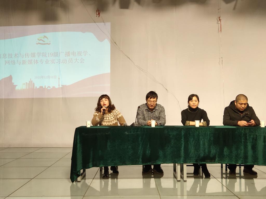 为了进一步做好员工实习工作,引导员工做好实习前的各项准备,推进实习工作的顺利开展,公司于12月31日下午4点30在信传楼三楼演播厅召开十大体育网站19级广播电视学、网络与新媒体专业实习动员大会。会议由新媒体教研室主任郭炳老师主持,十大体育网站副经理徐有芳老师、广电教研室主任任婧老师、李文学老师以及19级广播电视学、网络与新媒体专业全体同学参加。